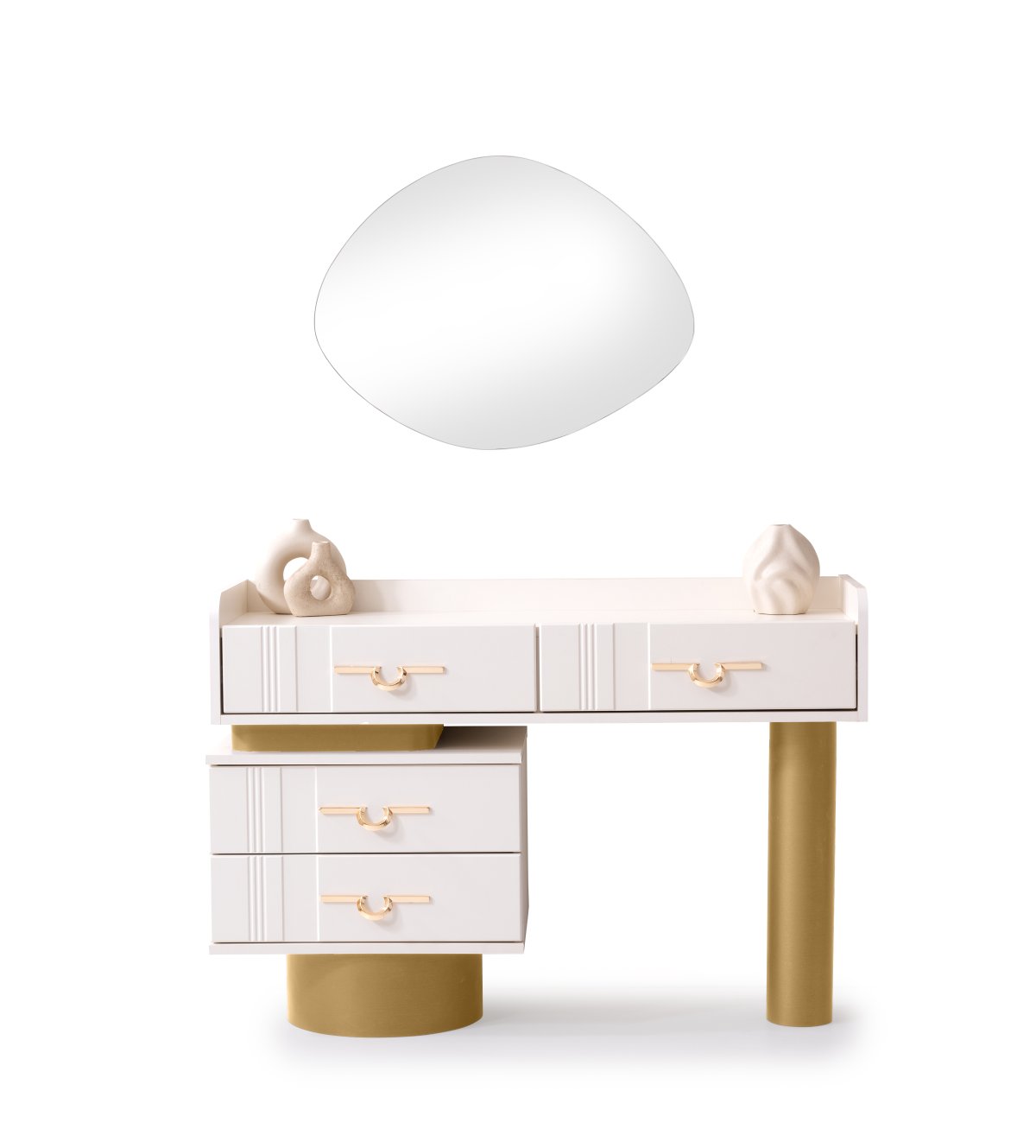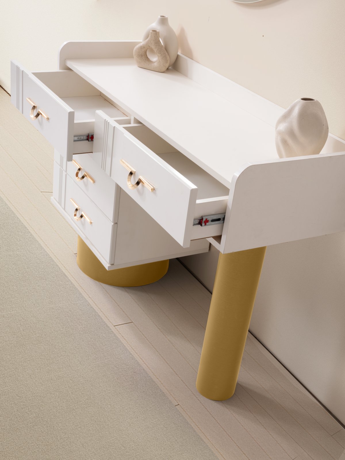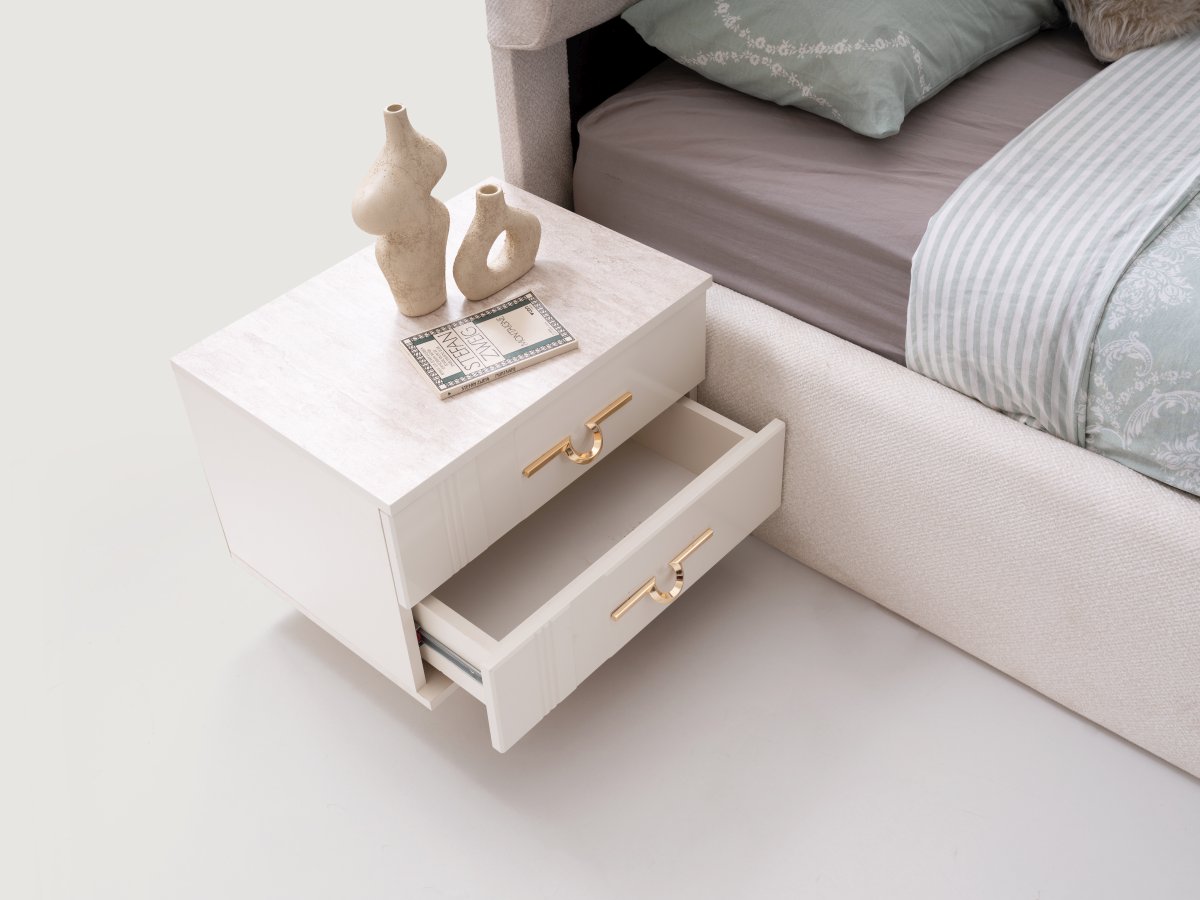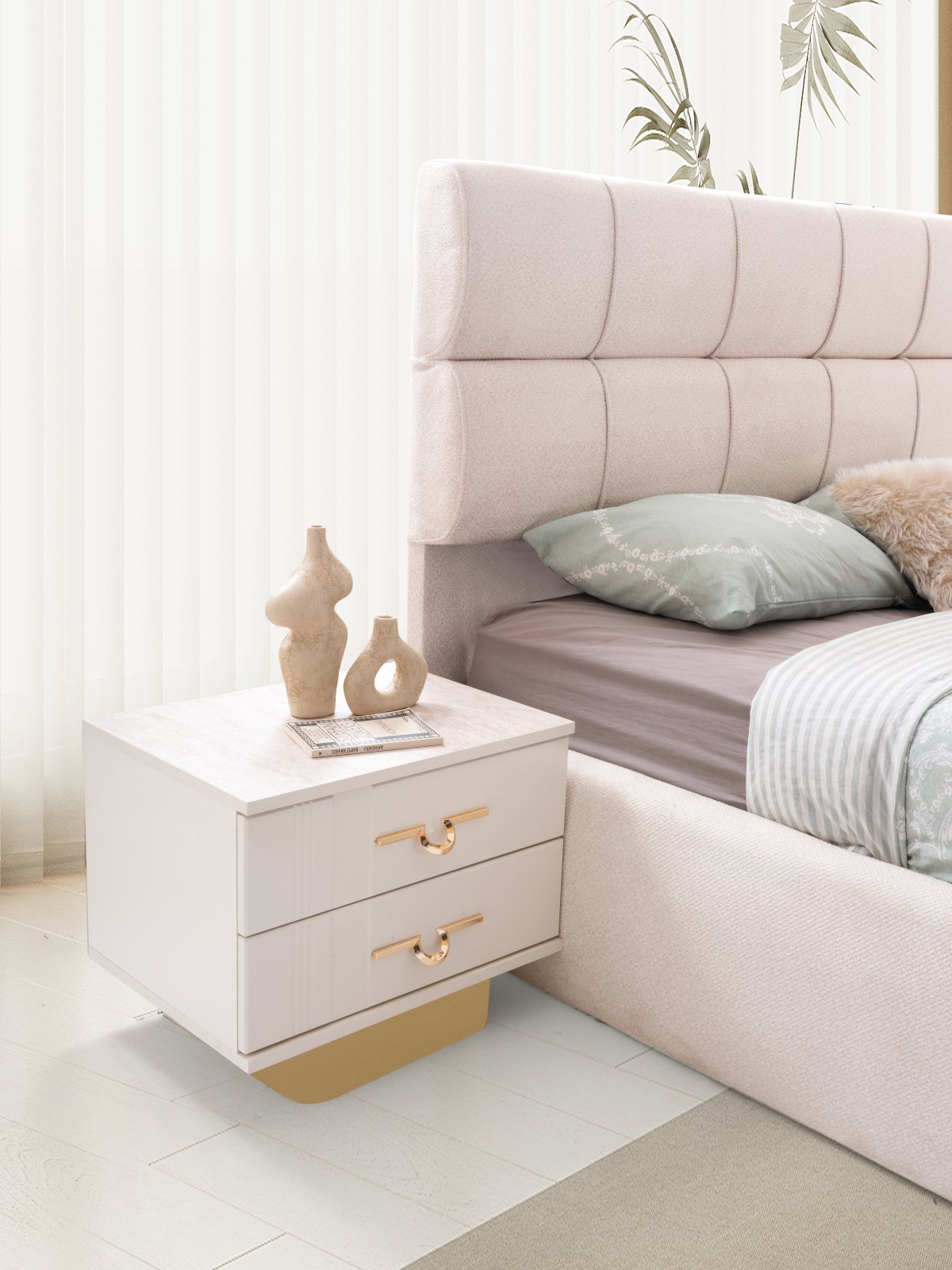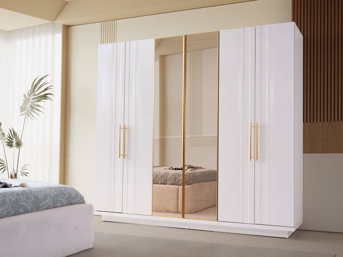 | Detay | Takımımız, altı kapılı bir dolap, şifonyer ve aynası, iki komodin ile bir başlıktan oluşmaktadır. Ürünlerin tamamı MDF malzeme kullanılarak üretilmiştir. Komodin ve şifonyer ayakları iskelet üstü kaplama olarak tasarlanmış olup, dolap, komodin ve şifonyer kapakları membran malzemedendir. |