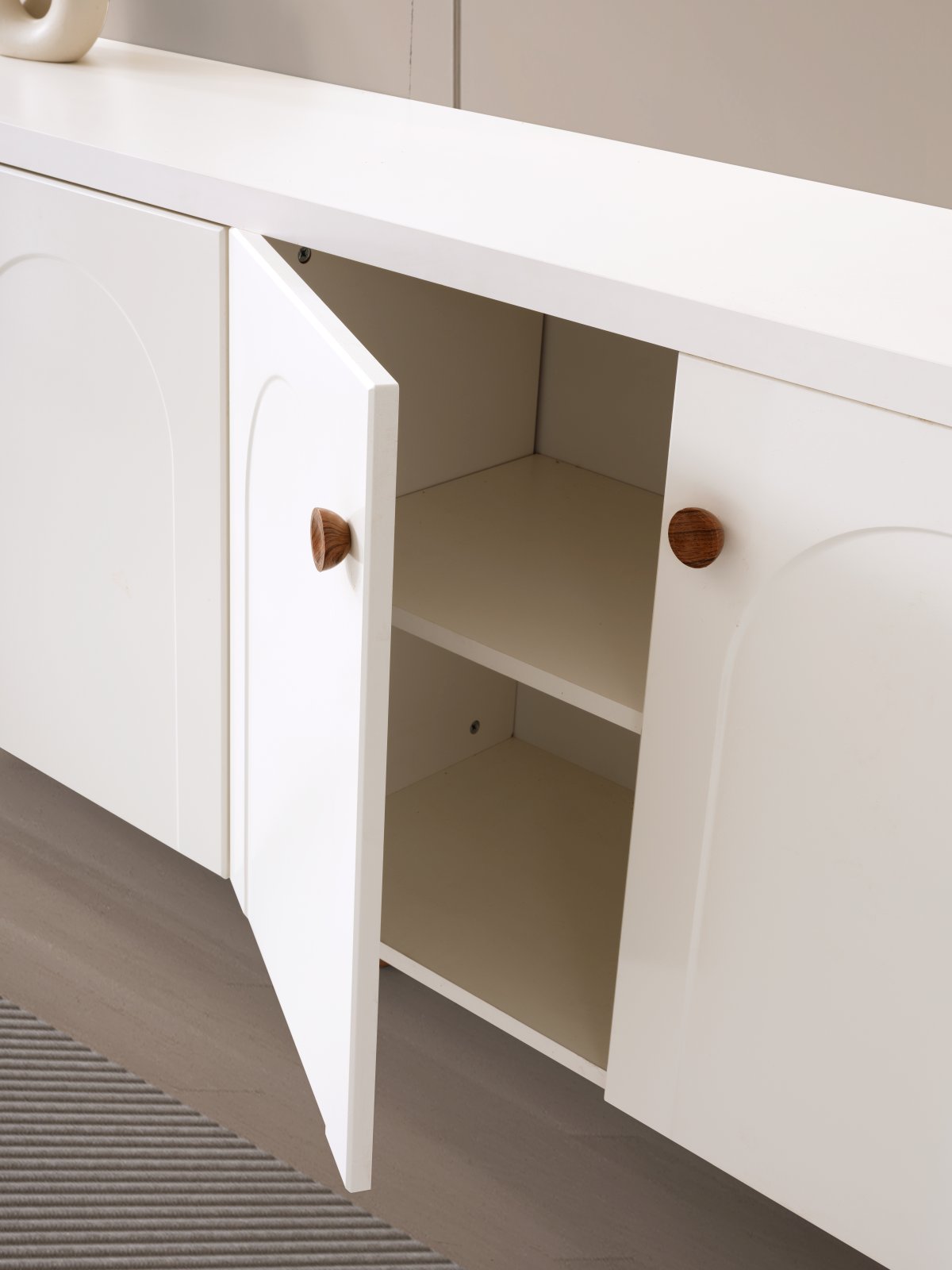 Takımımız; masa, konsol ve aynadan oluşmaktadır. Ürünlerimizin tamamı MDF malzemeden üretilmiştir. Masamız, ortadan açılabilir özelliğiyle pratik bir kullanım sunarken, masa ayağı profil MDF malzemeden yapılmıştır. Konsol ayakları ahşap olup, kapaklarında membran kaplama kullanılmıştır.